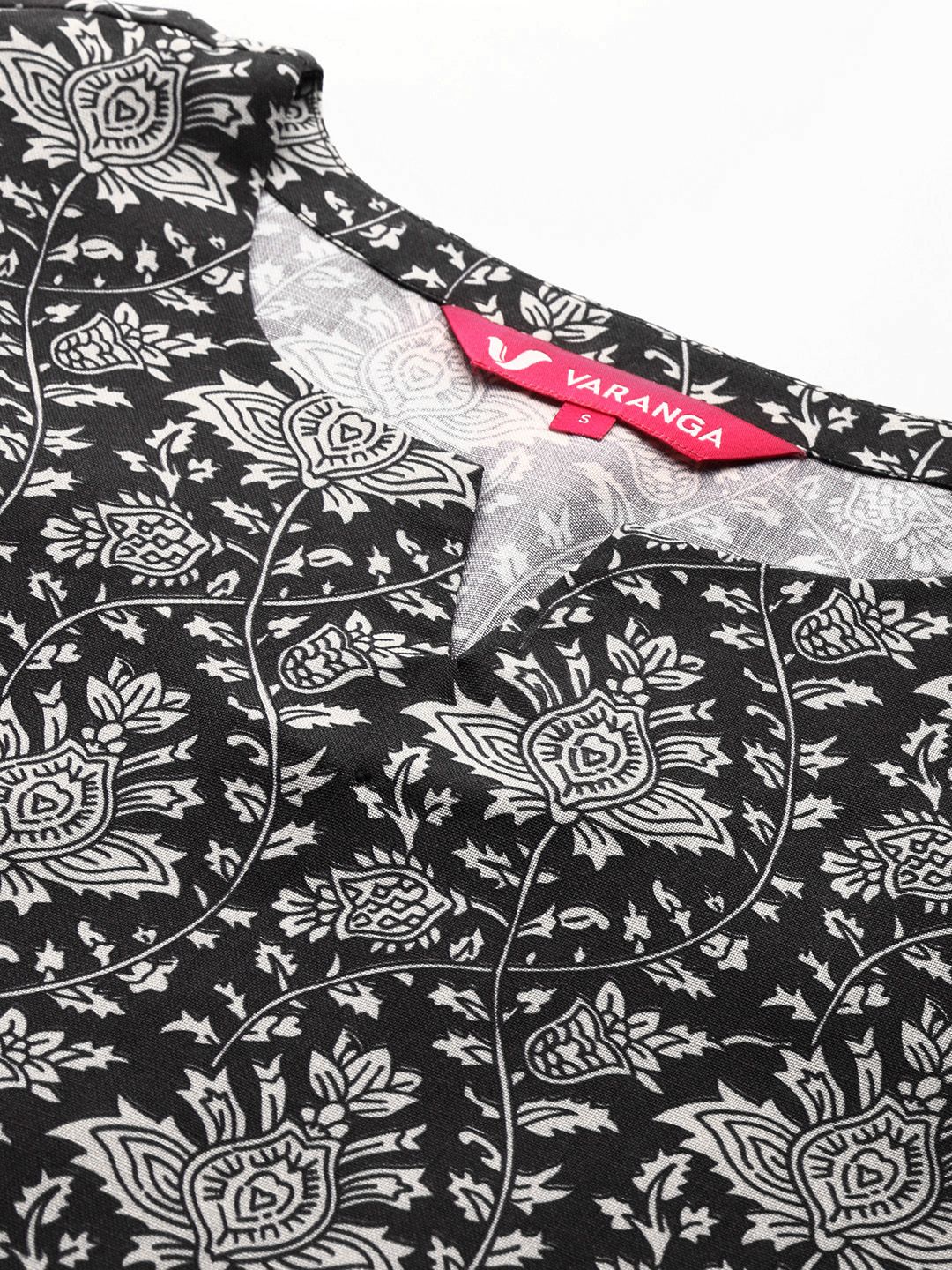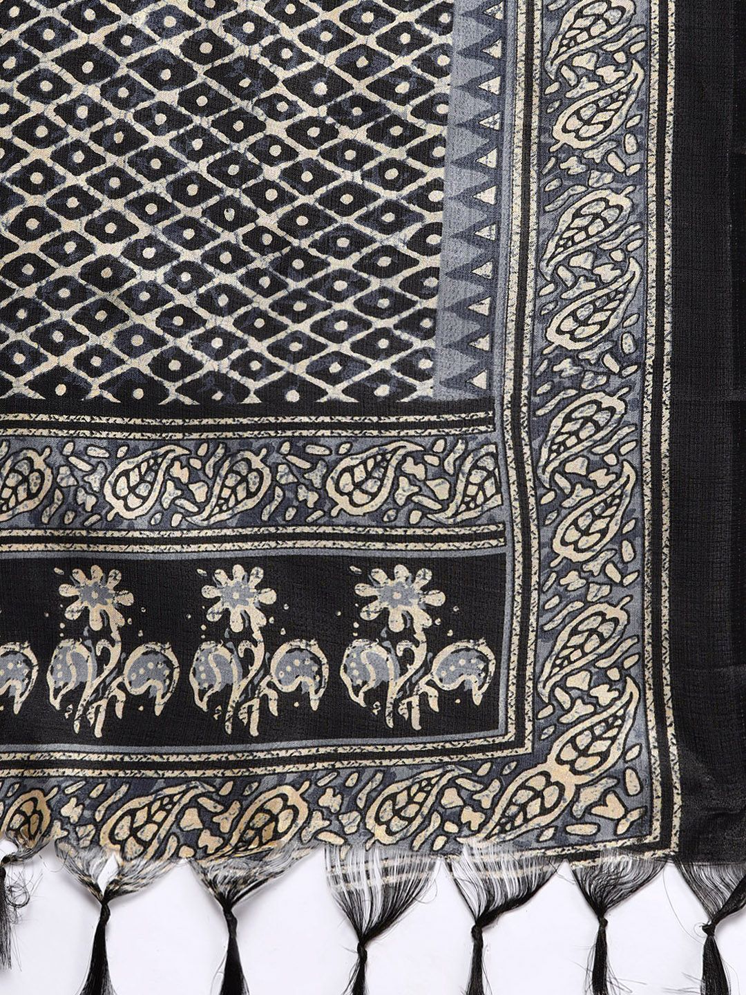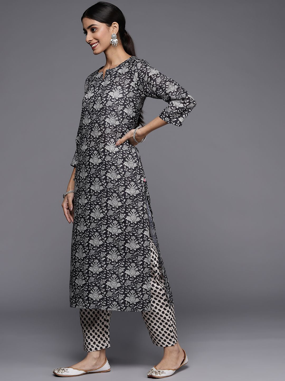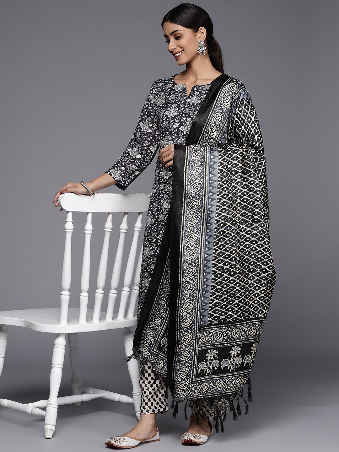 Dhiyona VA Women's Black Floral Printed Kurta with Trousers & Dupatta
