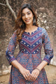 Women Blue And Rust Printed Straight Kurta Pant Set