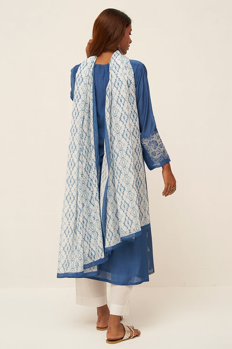 Women's Blue and White Bermberg Silk Embroidered Salwar Suit