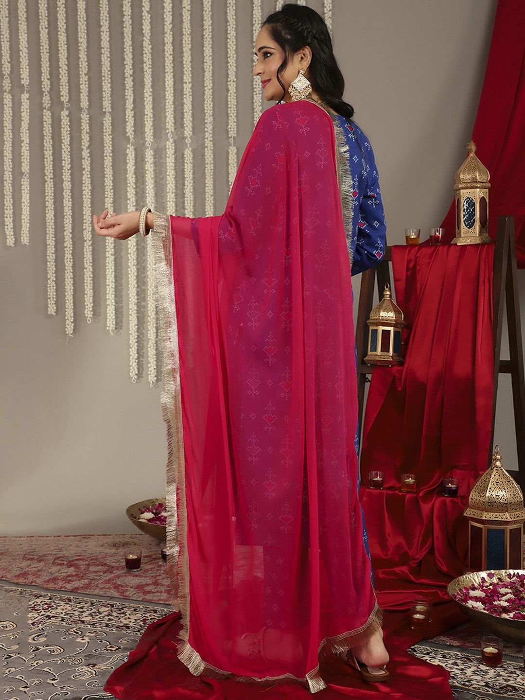 Dhiyona VA Women's Blue Bandhani Printed Gotta Patti Kurta with Trousers & Dupatta