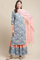 Blue printed Kurta with palazzos & dupatta