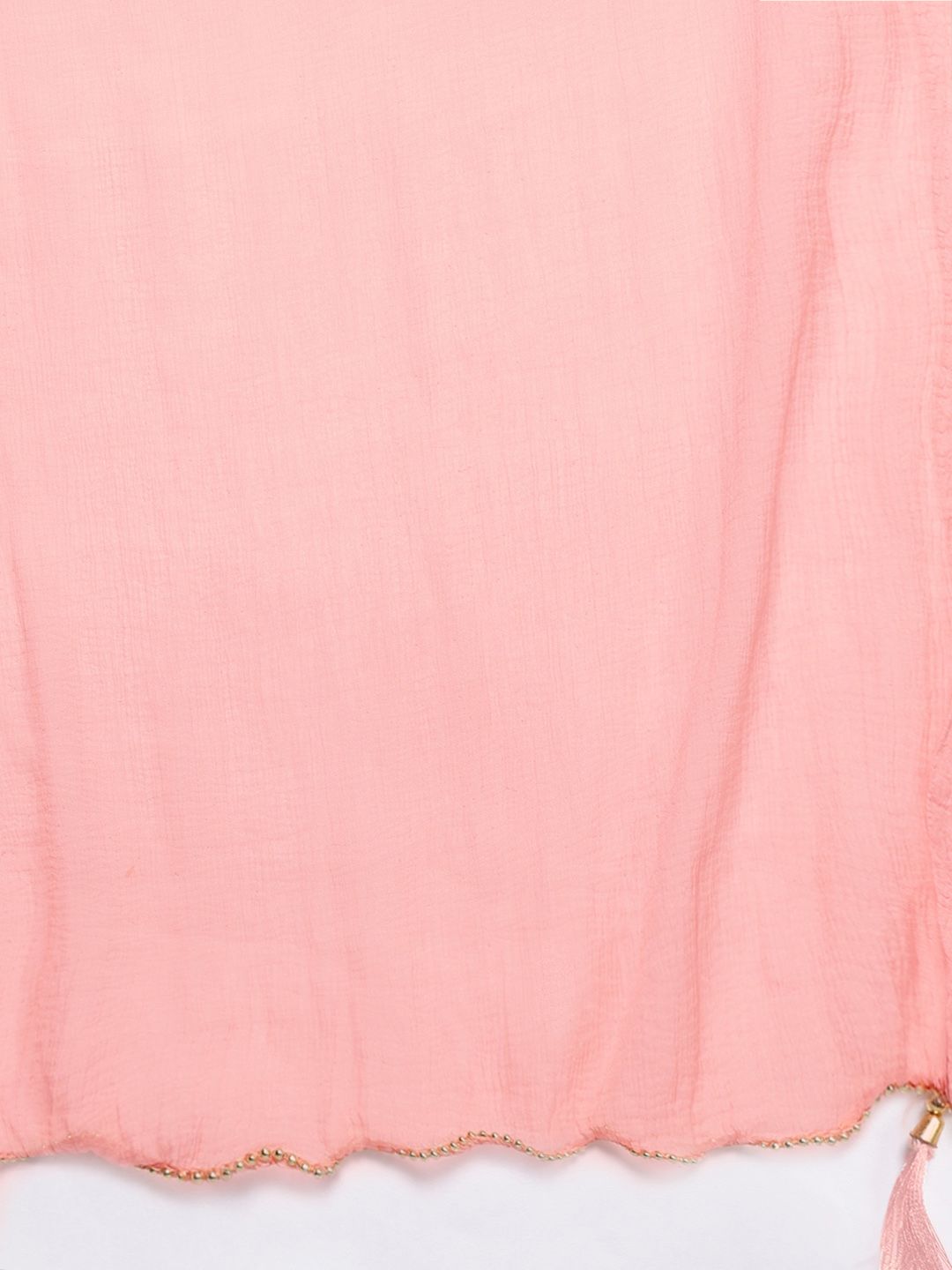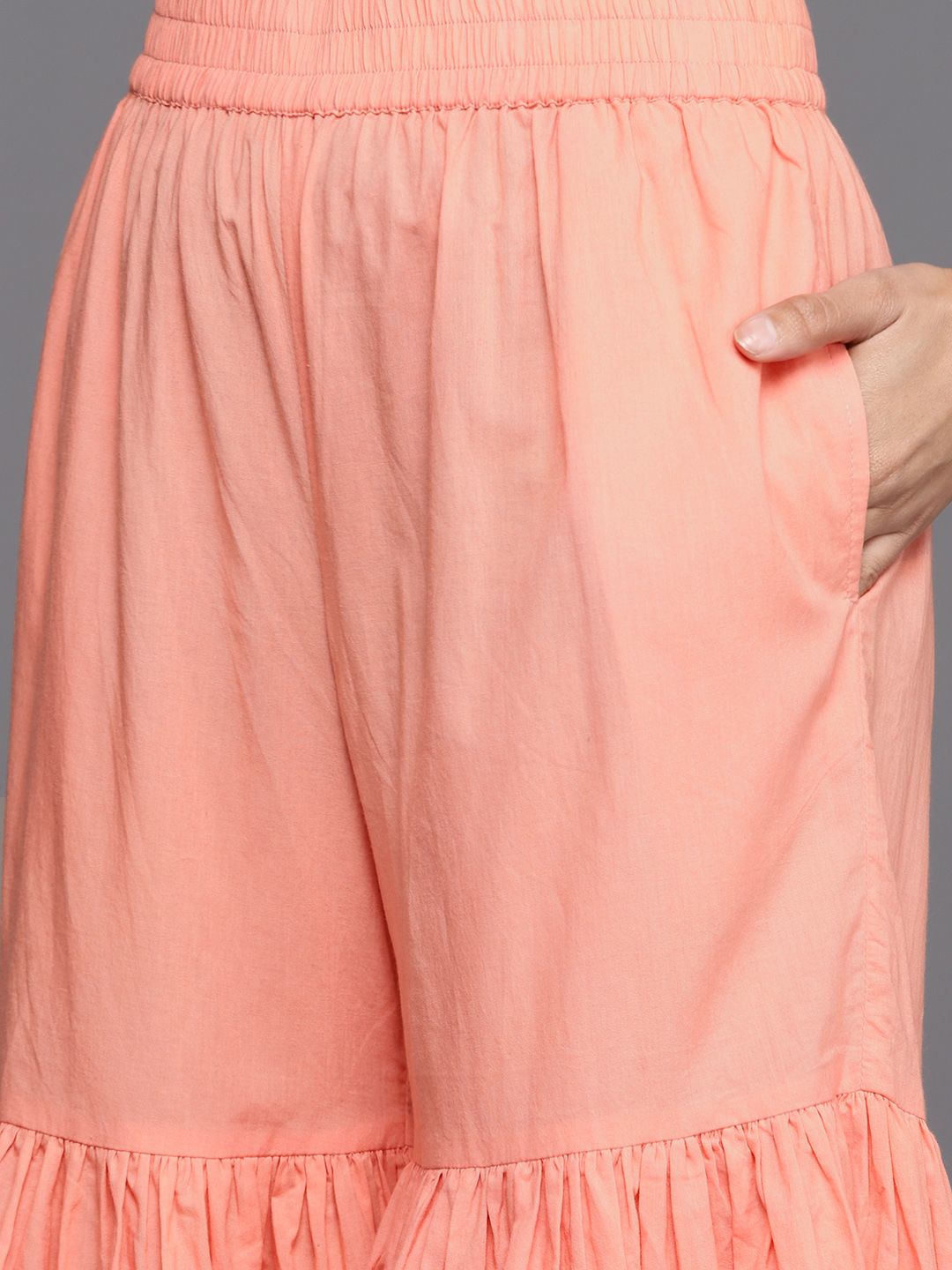 Blue, peach-coloured and white printed Kurta with Sharara with dupatta