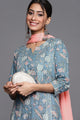 Dhiyona VA Women's Blue Ethnic Motifs Printed Straight Kurta with Sharara & With Dupatta
