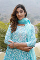 Women Blue Floral Anarkali Kurta Pant and Dupatta Set