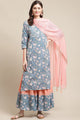 Dhiyona VA Women's Blue Floral Printed Gotta Patti Kurta with Sharara & With Dupatta