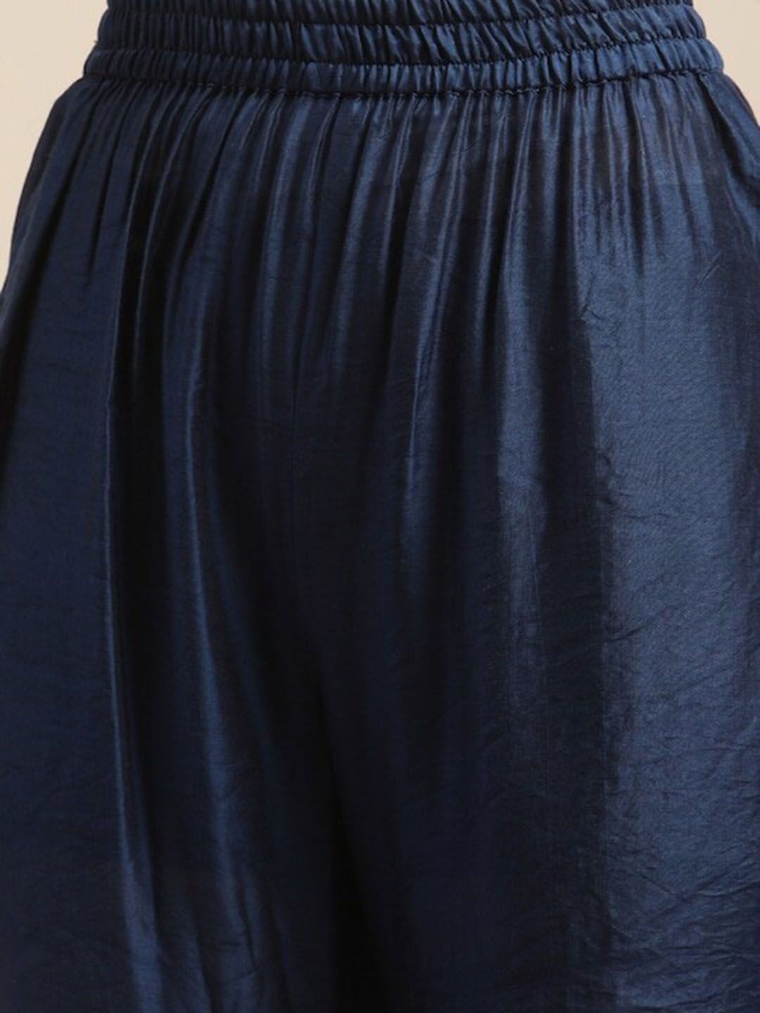 Dhiyona VA Women's Blue & Gold Floral Brocade Gotta Patti Straight Winter Kurta with Trousers