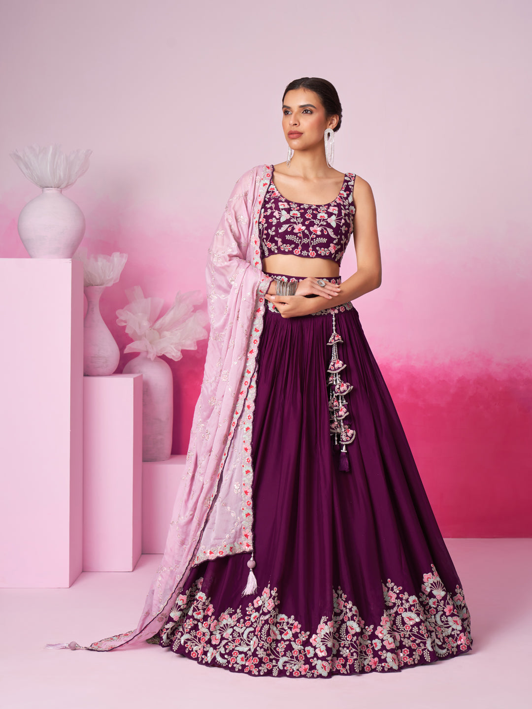 Women Burgundy Pure Georgette Sequin embroidery Lehenga choli & Dupatta