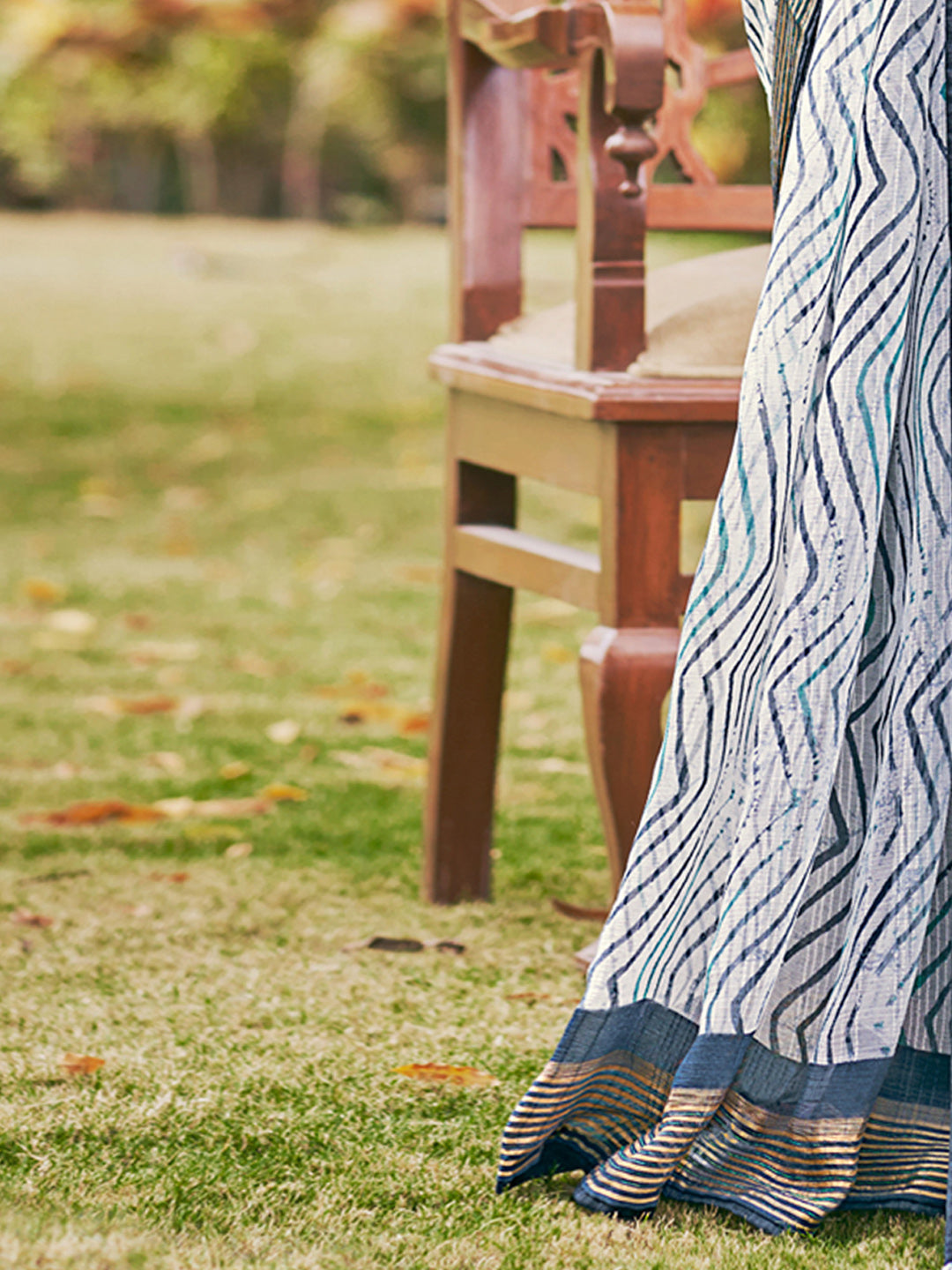 Women's Chiffon Grey Printed Designer Saree With Blouse Piece