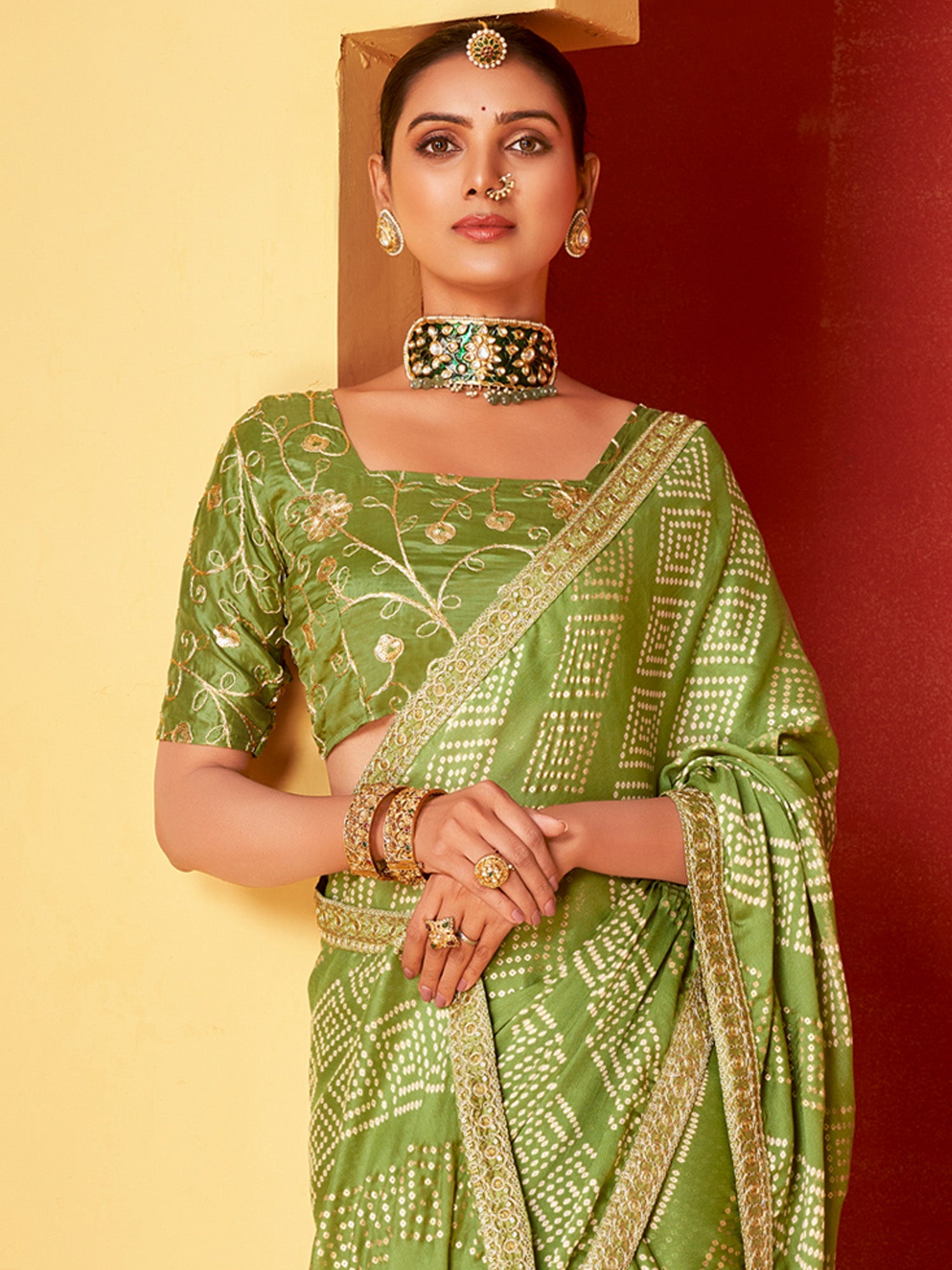 Women's Chiffon Light Green Embellished Designer Saree With Blouse Piece