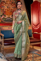 Women's Chiffon Light Green Woven Design Designer Saree With Blouse Piece