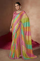 Women's Chiffon Multicolored Embellished Designer Saree With Blouse Piece