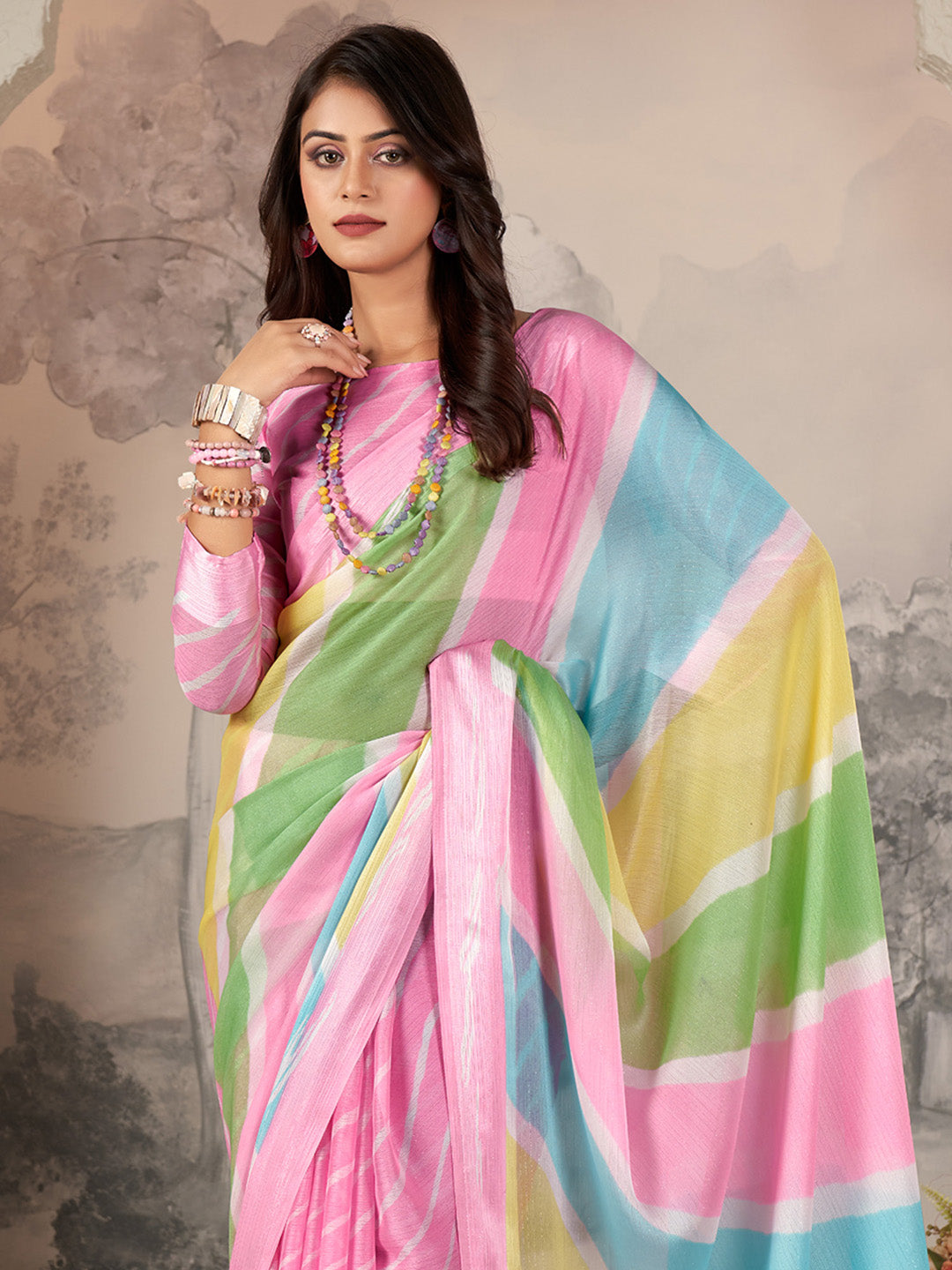 Women's Chiffon Pink Printed Designer Saree With Blouse Piece