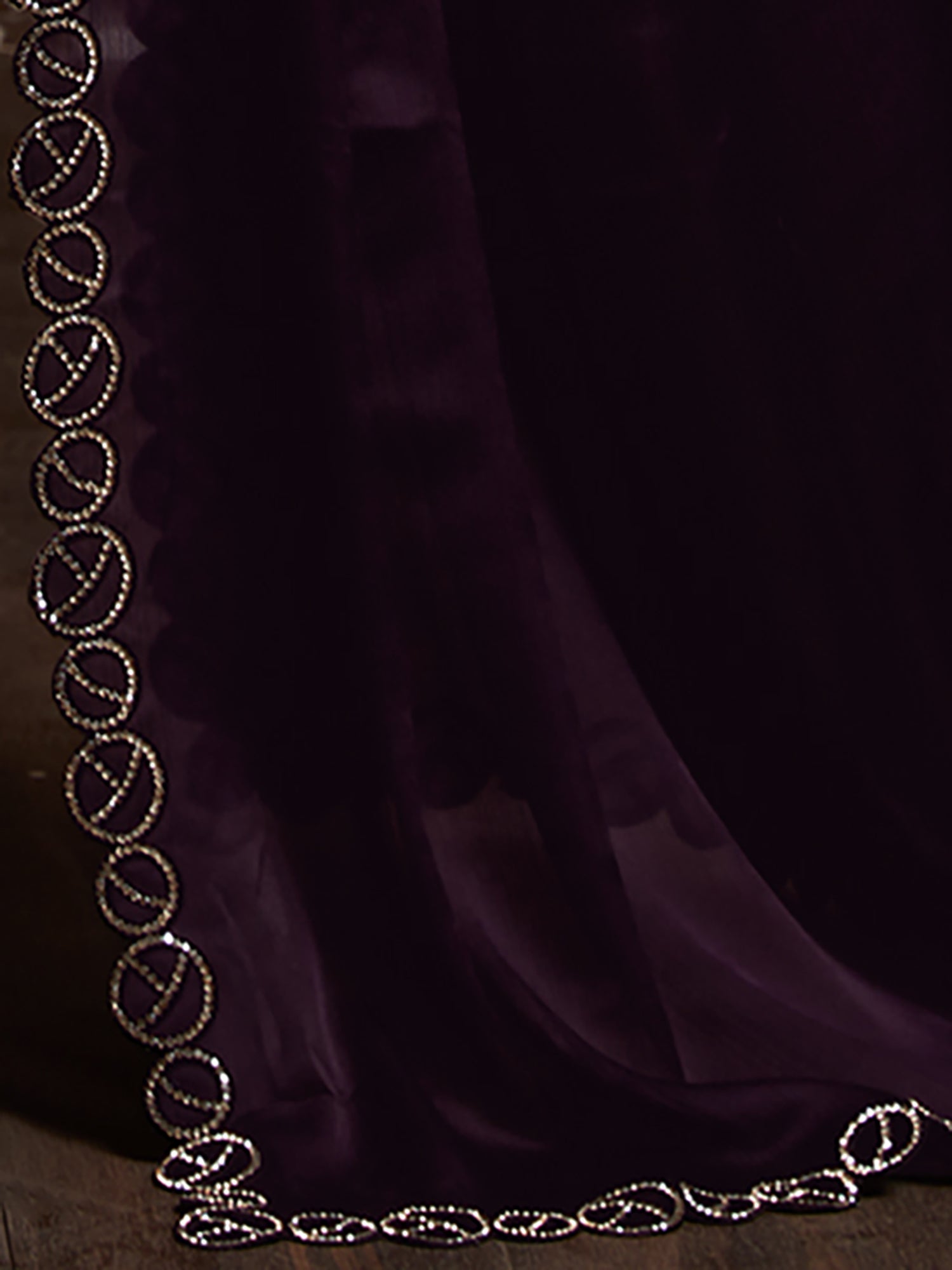 Women's Chiffon Purple Embellished Celebrity Saree With Blouse Piece
