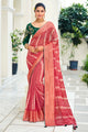 Women's Chiffon Red Embellished Designer Saree With Blouse Piece