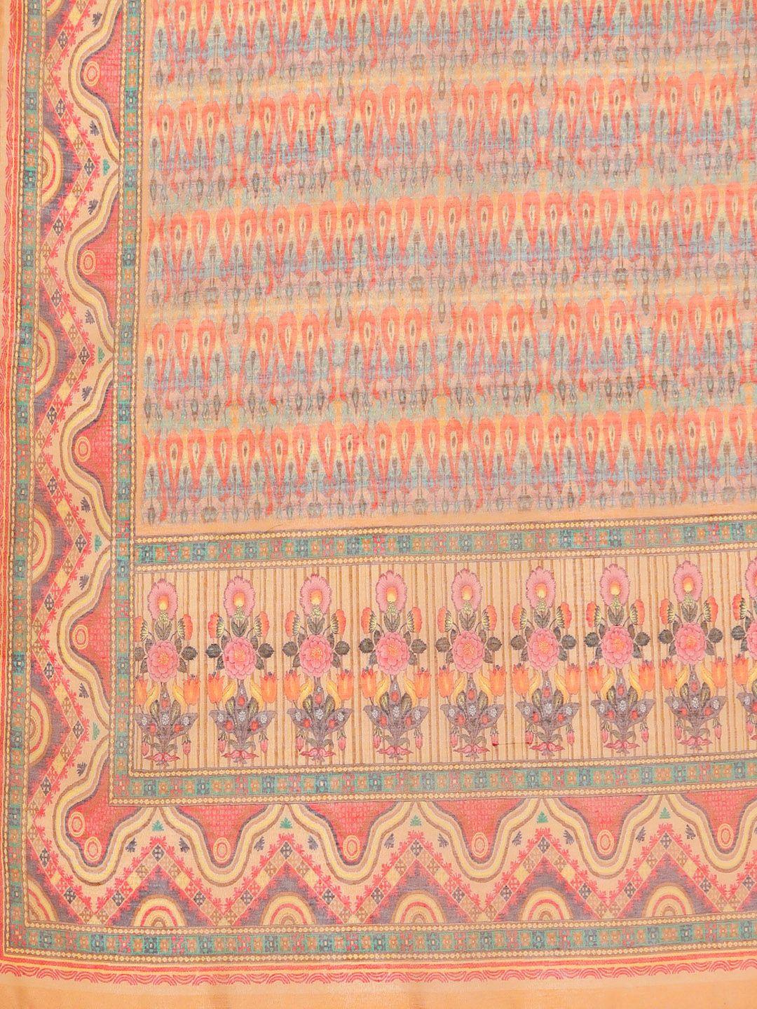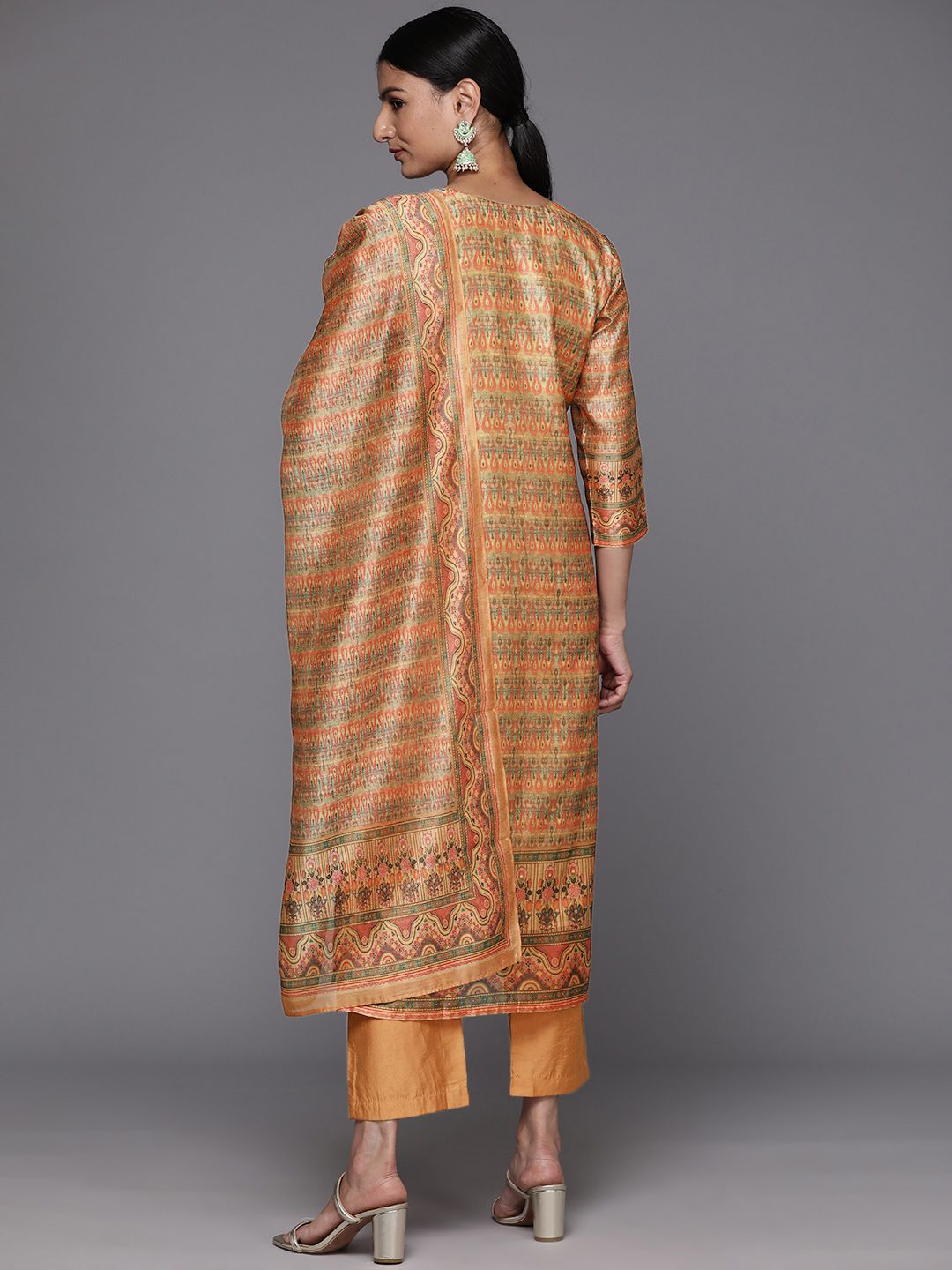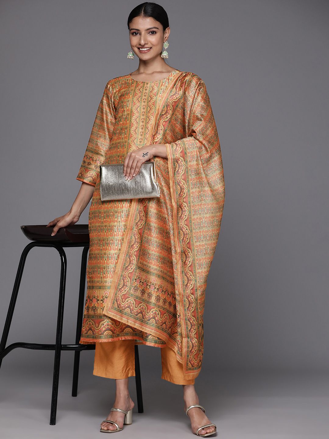 Dhiyona VA Women's Coral Printed Regular Chanderi Silk Kurta with Trousers & With Dupatta