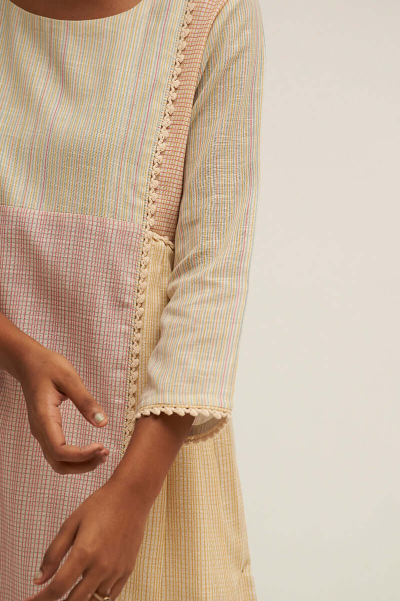 - Top- Digital Printed Cotton Linen Kurta Enhance With Lace Detailing