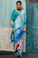 Women's Crepe Light Blue Printed Designer Saree With Blouse Piece