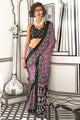 Women's Crepe Magenta Printed Designer Saree With Blouse Piece