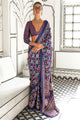 Women's Crepe Navy Blue Printed Designer Saree With Blouse Piece