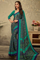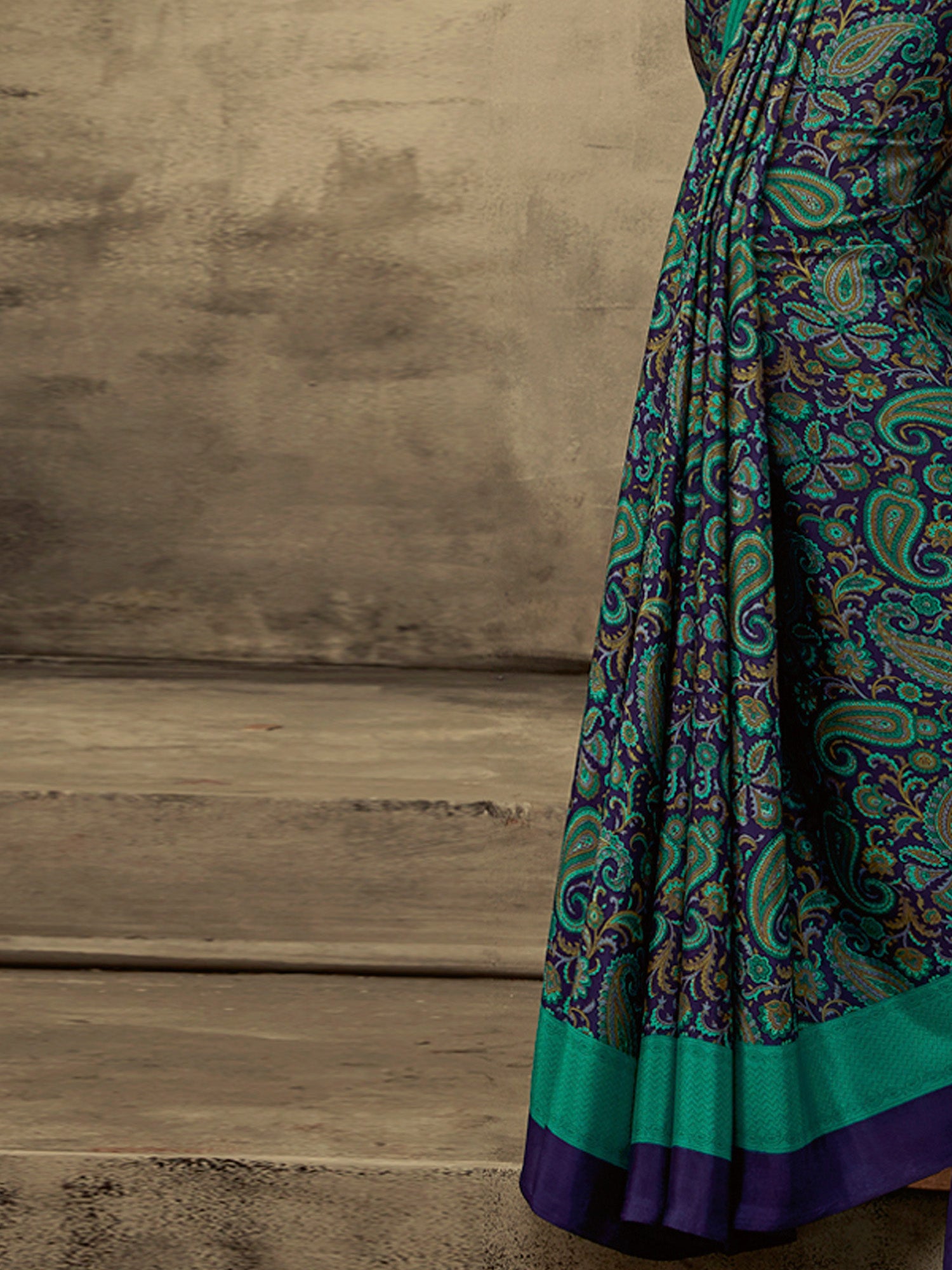 Women's Crepe Navy Blue Printed Designer Saree With Blouse Piece