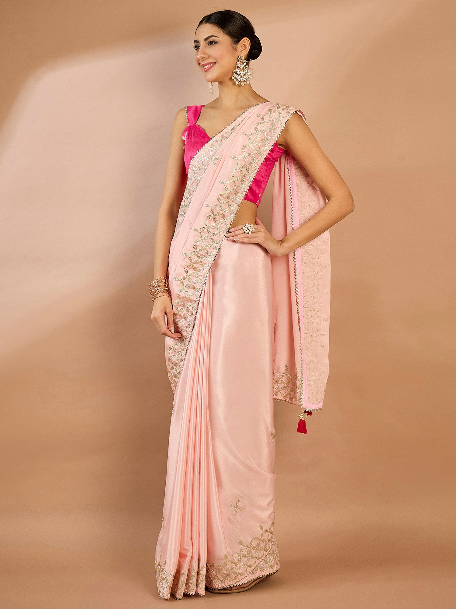 Women's Crepe Pink Embellished Designer Saree With Blouse Piece