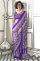 Women's Crepe Purple Printed Designer Saree With Blouse Piece