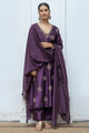 Women's Deep Purple Golden Embroidered Raw Silk Salwar Suit With Silk Organza Dupatta