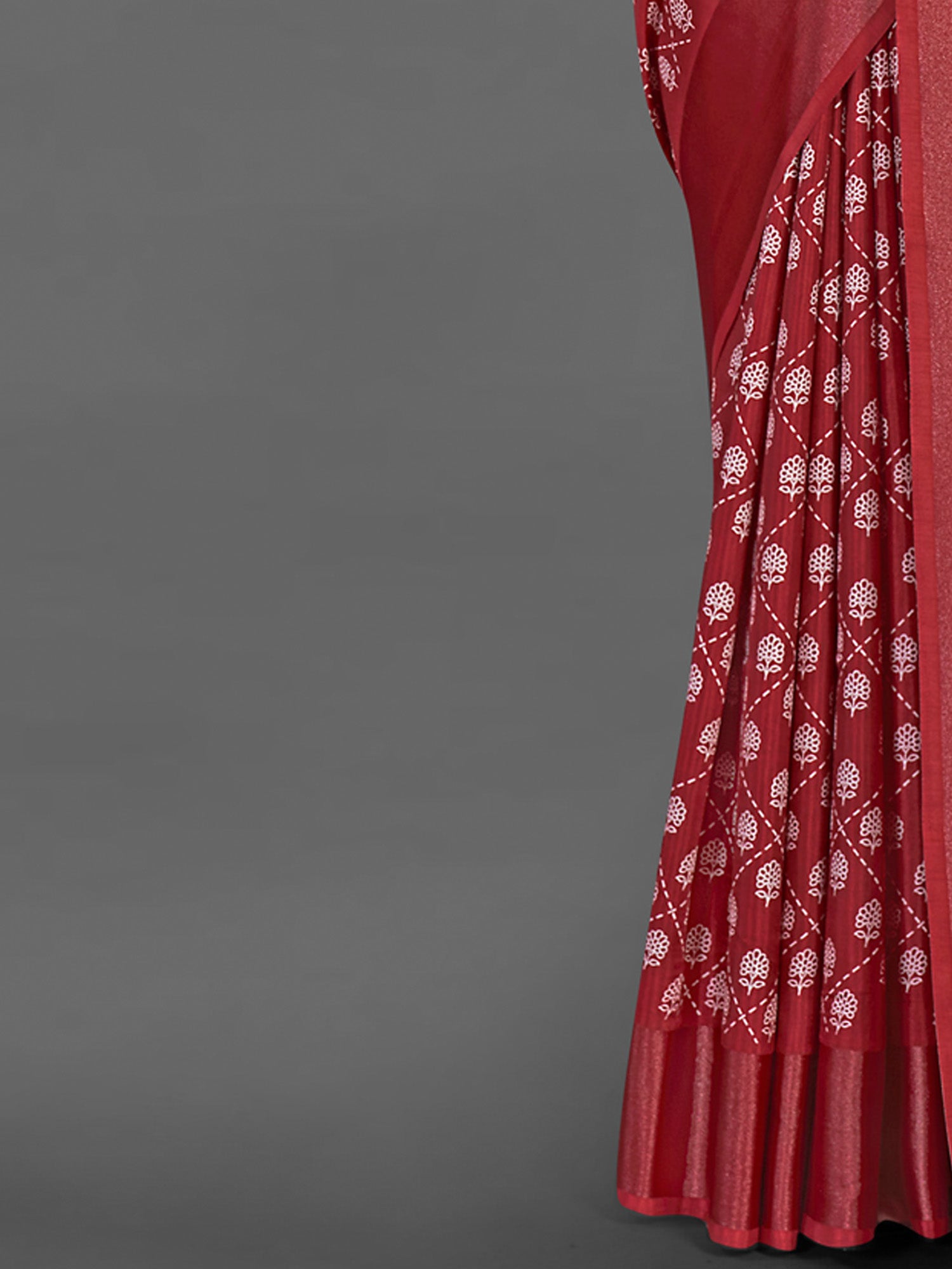 Women's Dola Silk Maroon Printed Designer Saree With Blouse Piece
