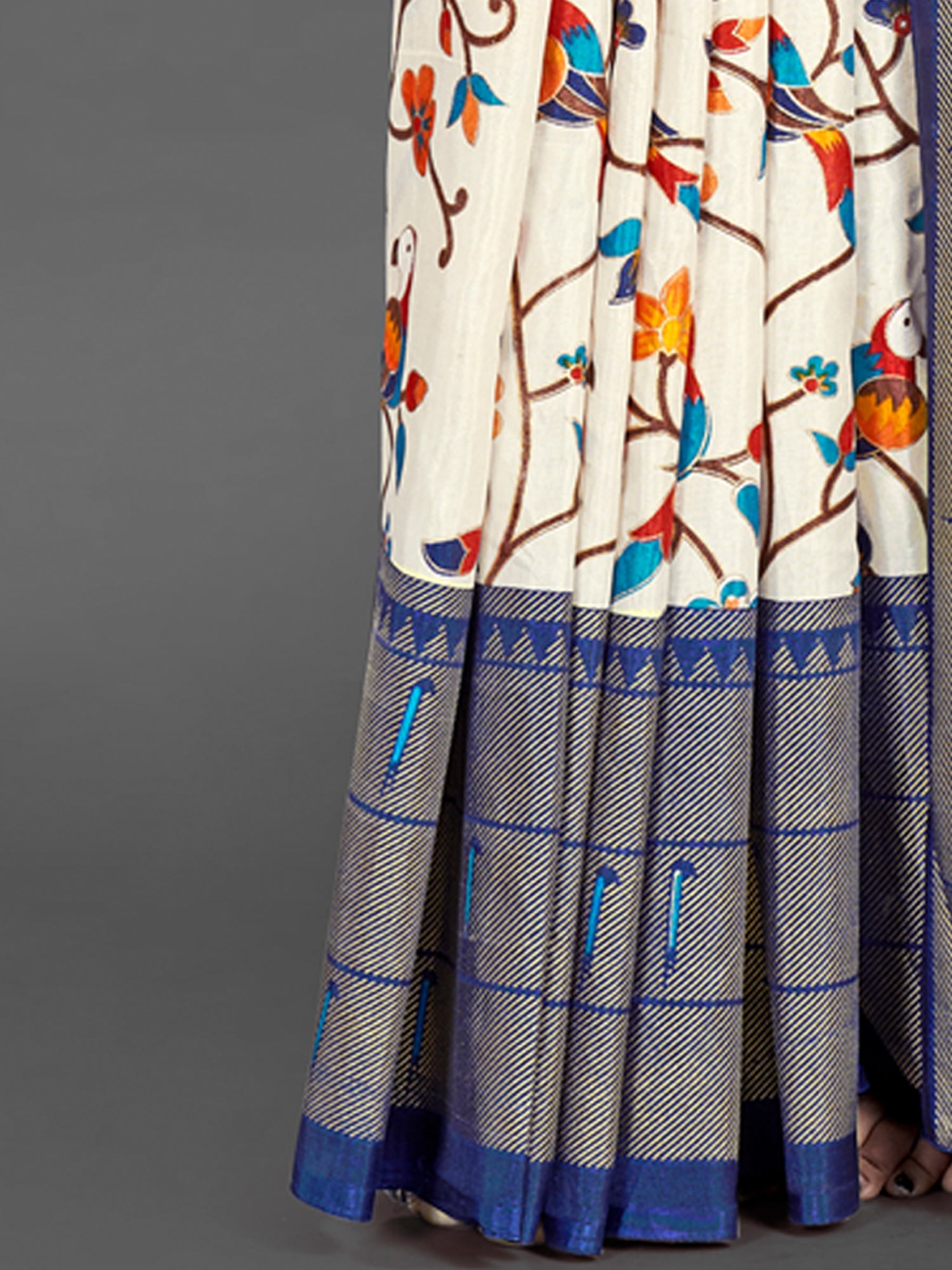 Women's Dola Silk Off White Printed Designer Saree With Blouse Piece