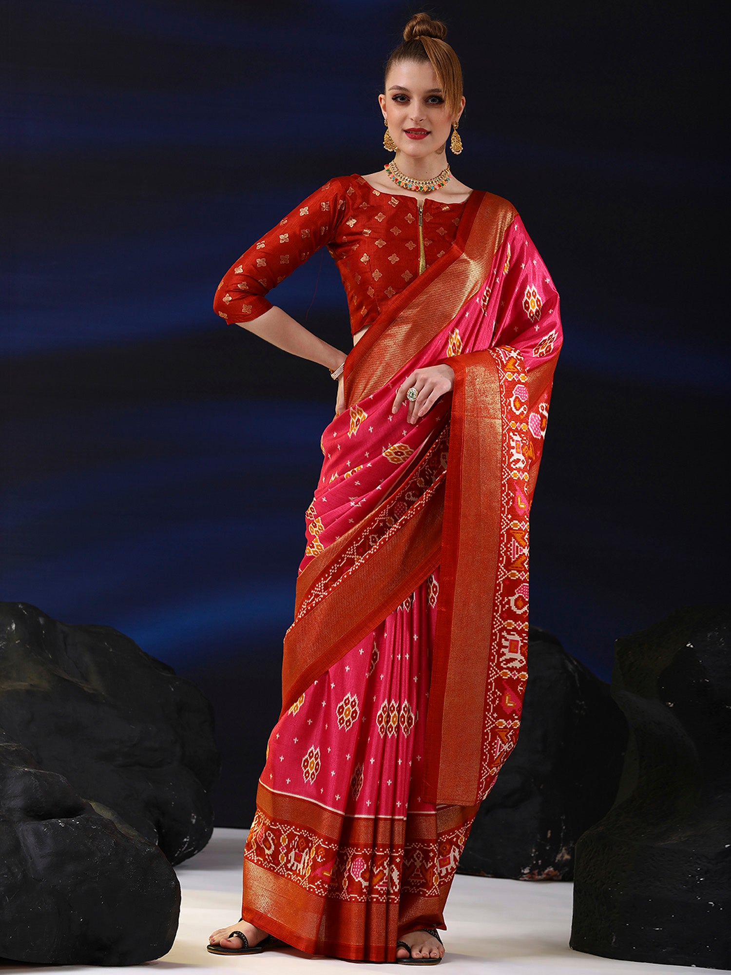 Women's Dola Silk Pink Printed Designer Saree With Blouse Piece