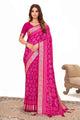Women's Dola Silk Pink Printed Designer Saree With Blouse Piece