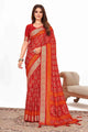 Women's Dola Silk Red Printed Designer Saree With Blouse Piece