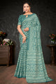 Women's Dola Silk Sea Green Printed Designer Saree With Blouse Piece