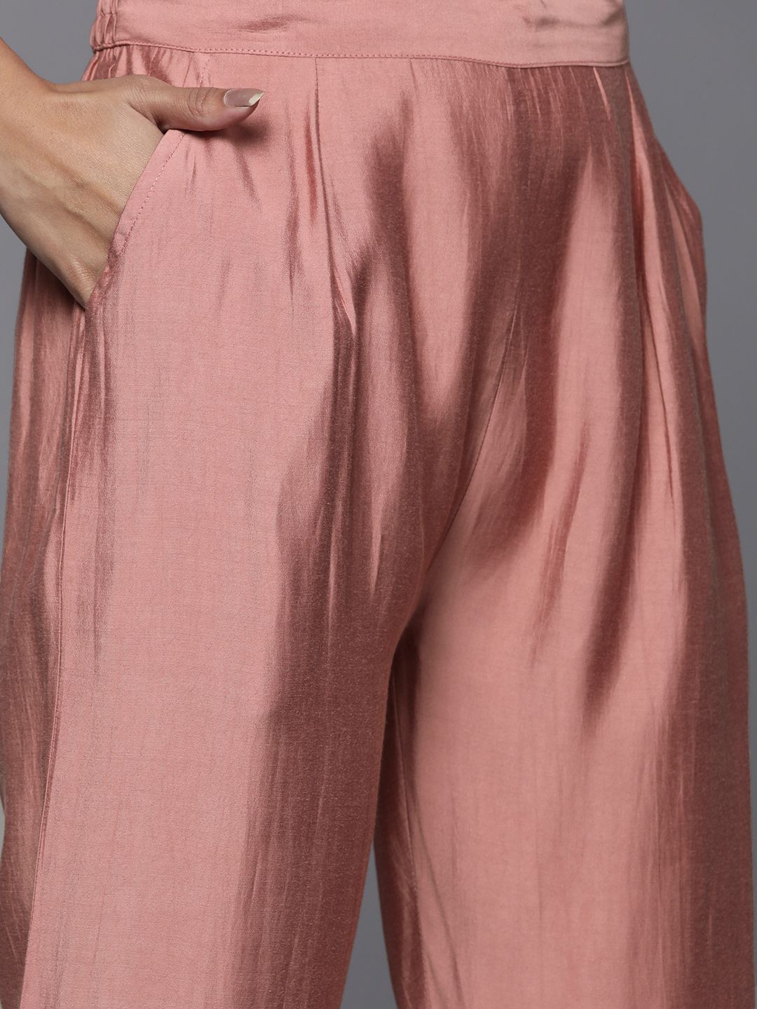 Dusty rose pink embroidered Kurta with Trousers with dupatta