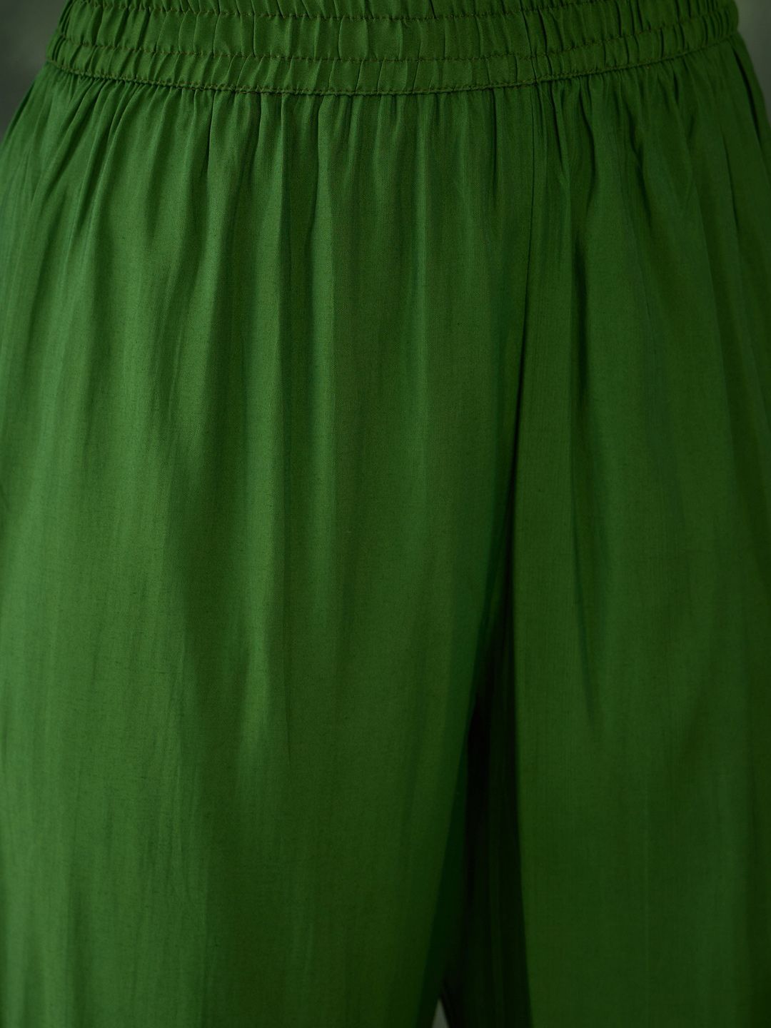 Women's Chanderi Embroidered Flared Kurta with Pant And Dupatta Sets