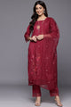 Red embroidered Kurta with Trousers with dupatta