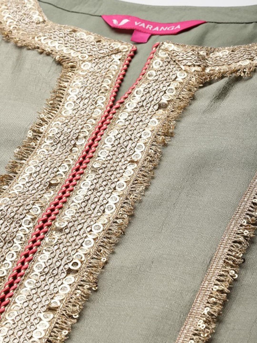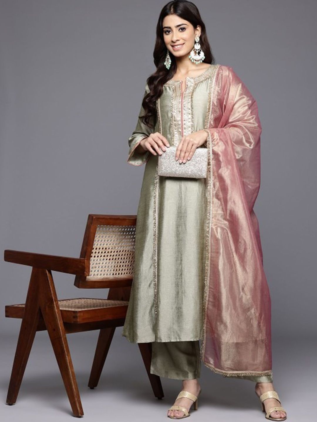 Green, Pink, Gold Embroidered Kurta with Palazzo