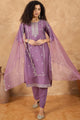Purple & Gold Embroidered Kurta with Pyjama & Dupatta