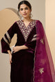 Burgundy embroidered Kurta with Trousers with dupatta