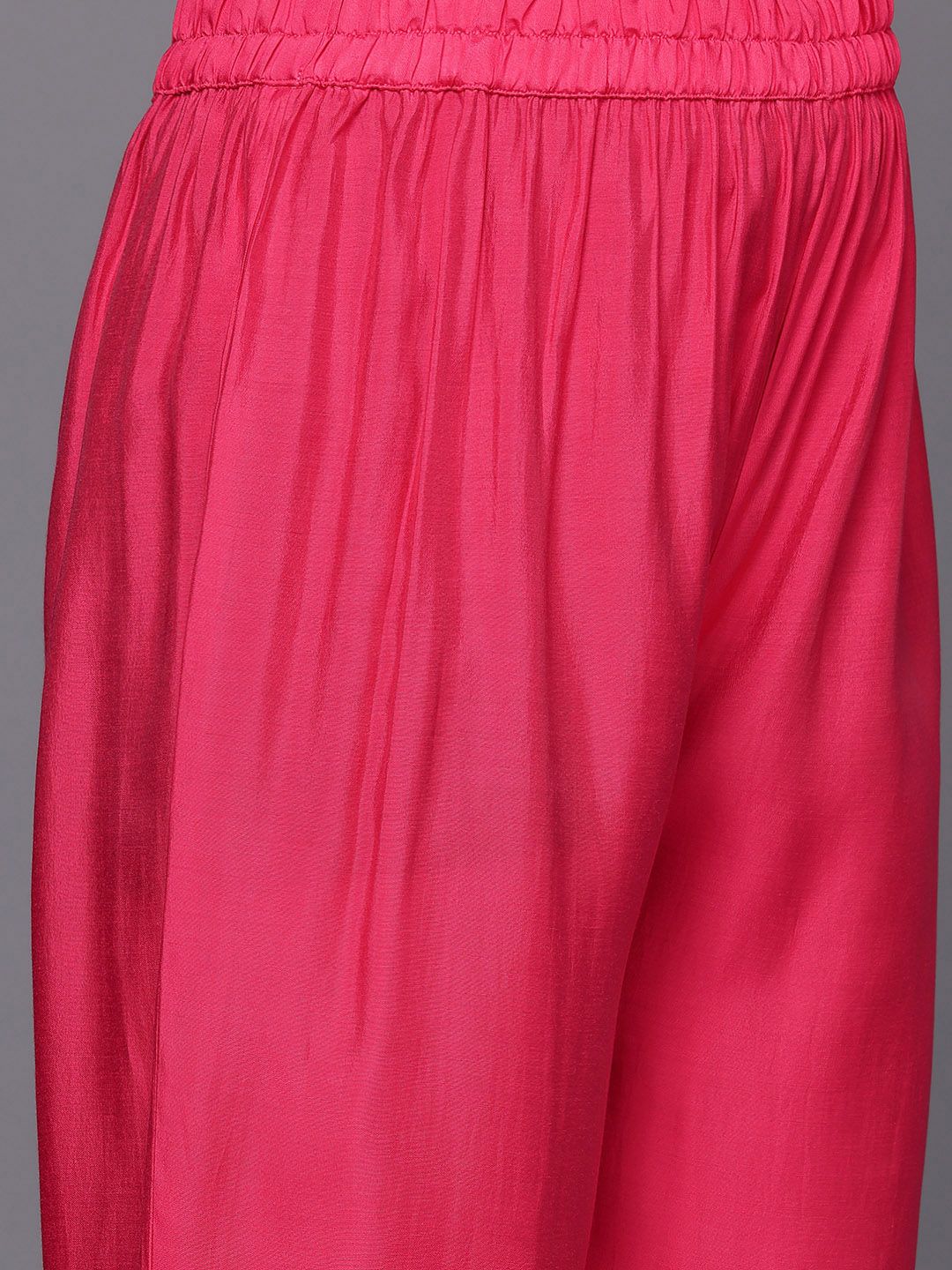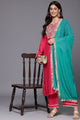 Fuchsia embroidered Kurta with Trousers with dupatta