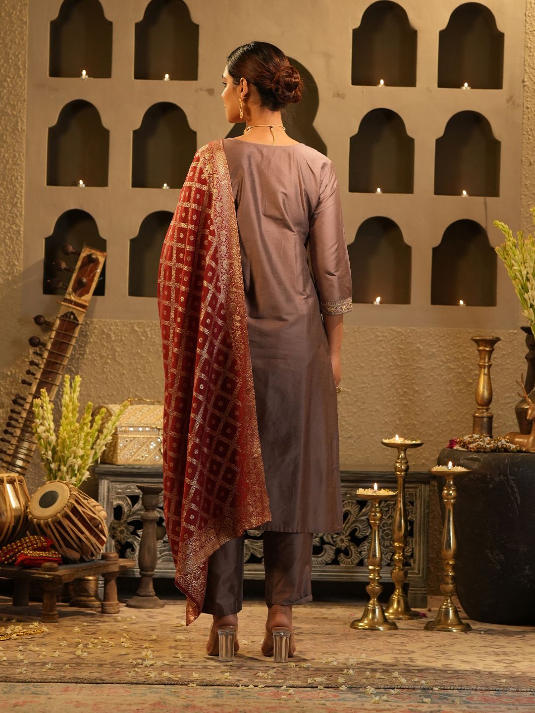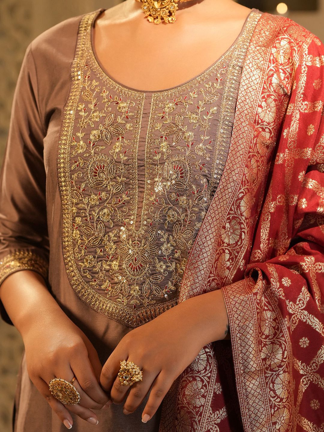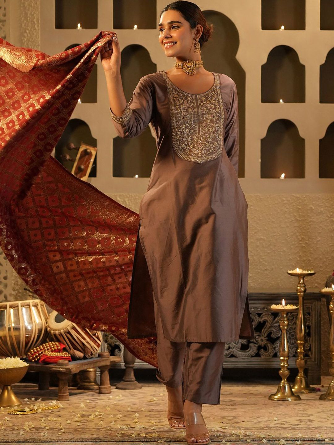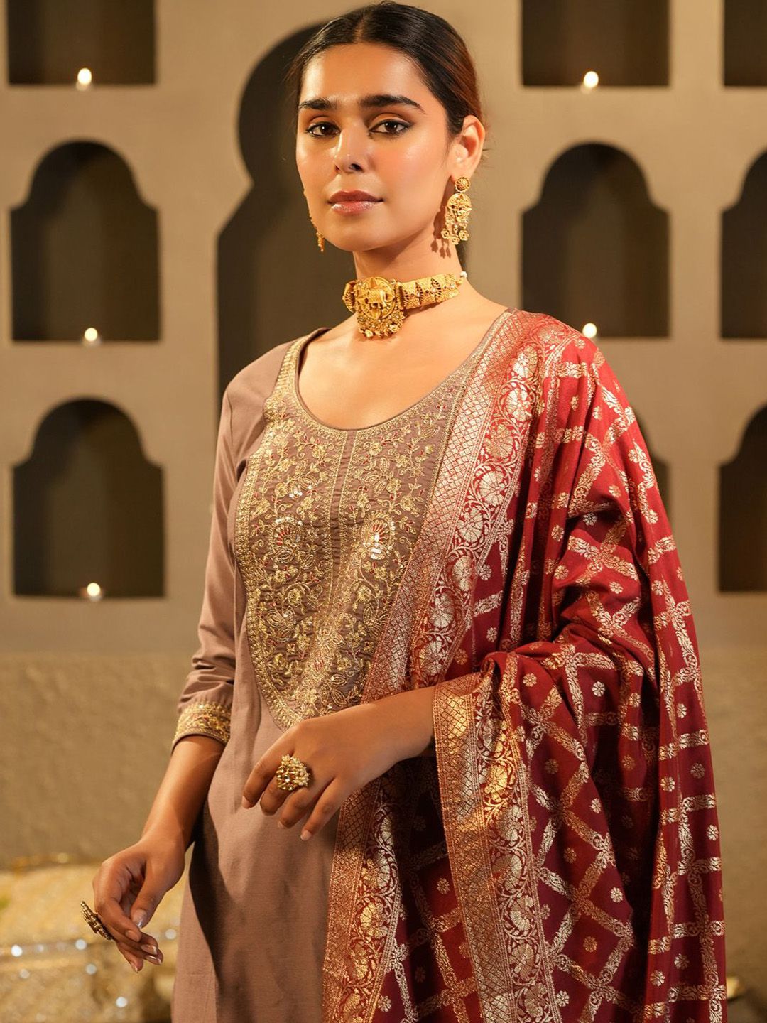 Dhiyona IE Women's Women Ethnic Motifs Embroidered Regular Sequinned Kurta Set With Dupatta