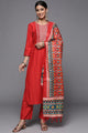 Rust embroidered Kurta with Trousers with dupatta