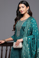 Turquoise blue embroidered Kurta with Trousers with dupatta