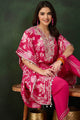 Pink self design Kurta with Trousers