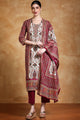 Burgundy, White, Green Printed Kurta with Trouser & Dupatta