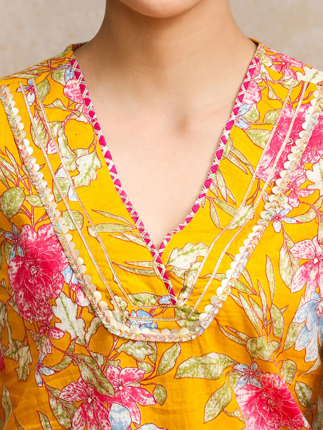 Dhiyona VA Women's Ethnic Motifs Printed Regular Beads and Stones Pure Cotton Kurta with Trousers & With Dupatta