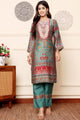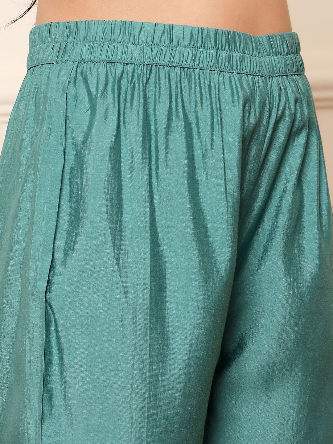 Dhiyona VA Women's Ethnic Motifs Printed Regular Gotta Patti Chanderi Silk Kurta with Trousers