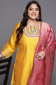 Dhiyona VA Women's Ethnic Motifs Yoke Design Sequinned Plus Size Kurta with Palazzos & Dupatta