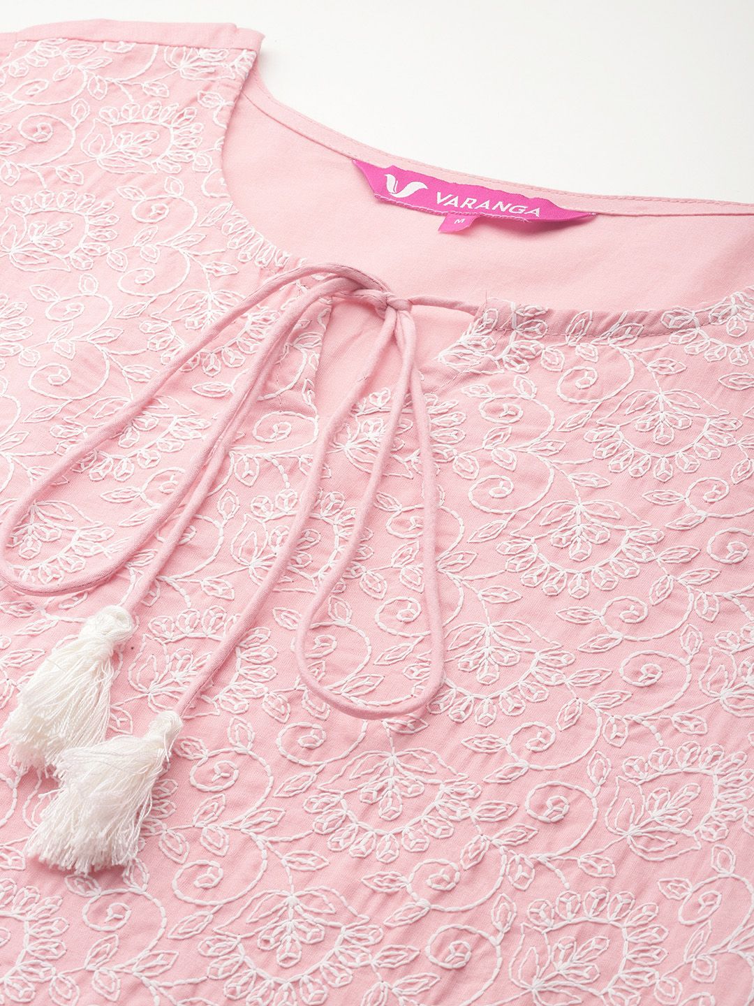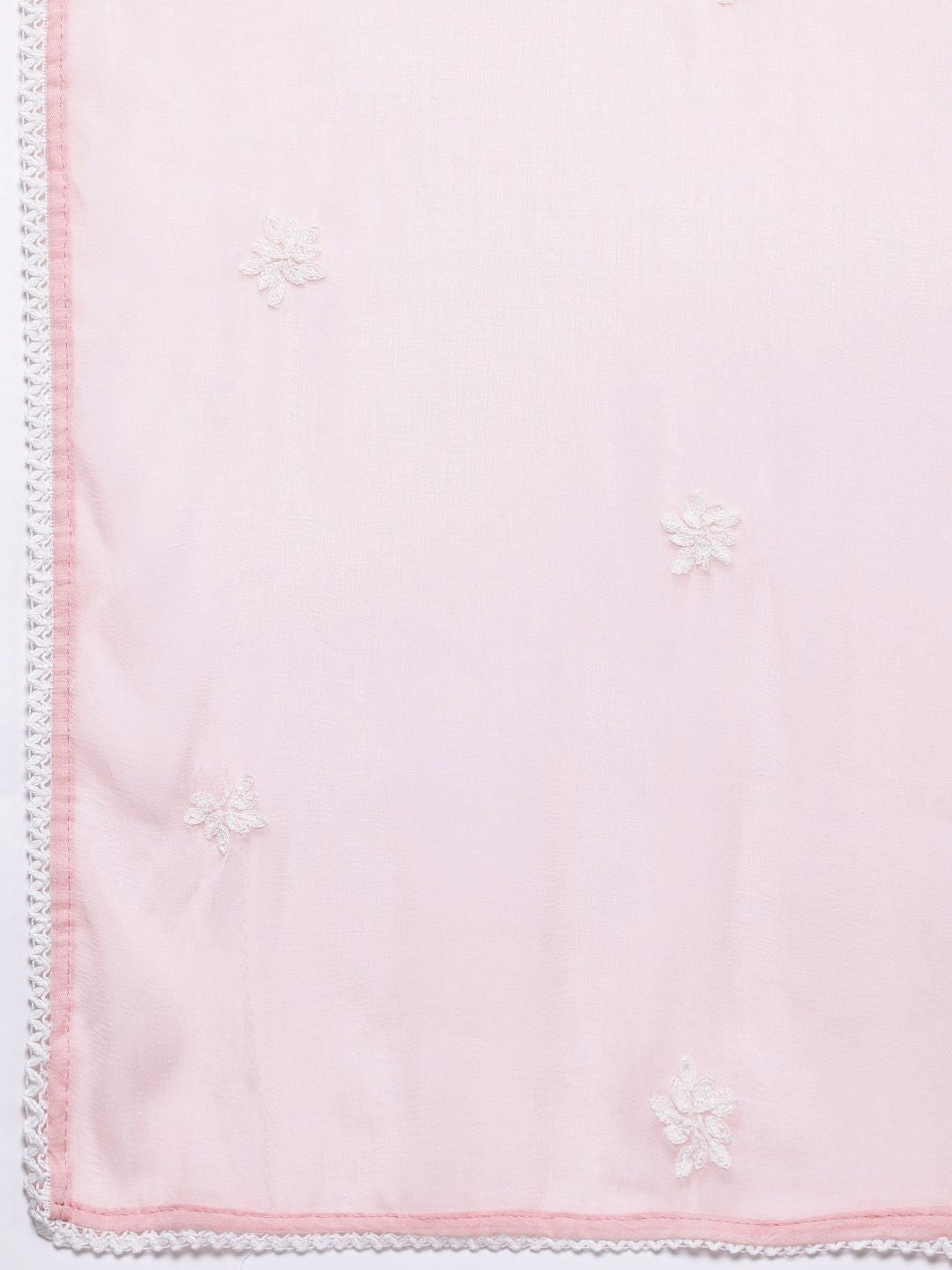 Dhiyona VA Women's Floral Embroidered Chikankari Pure Cotton Kurta with Trousers & Dupatta