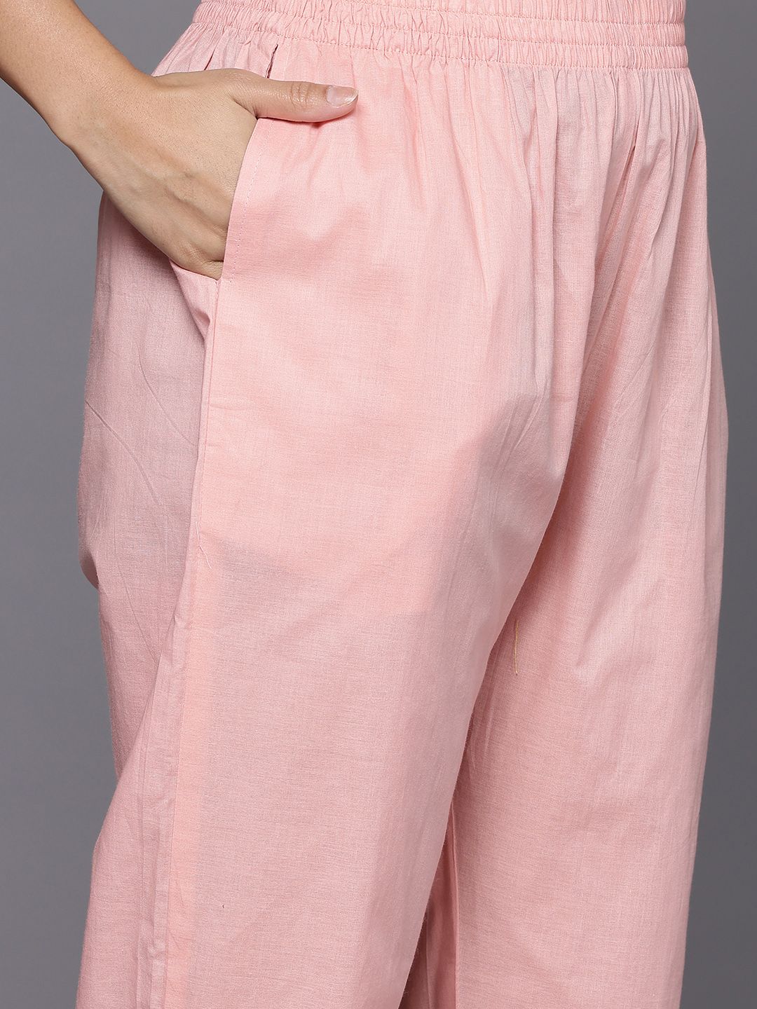 Peach-coloured embroidered Kurta with Trousers with dupatta
